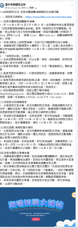 114年國家防災日–全民地震避難演練暨防災宣導活動