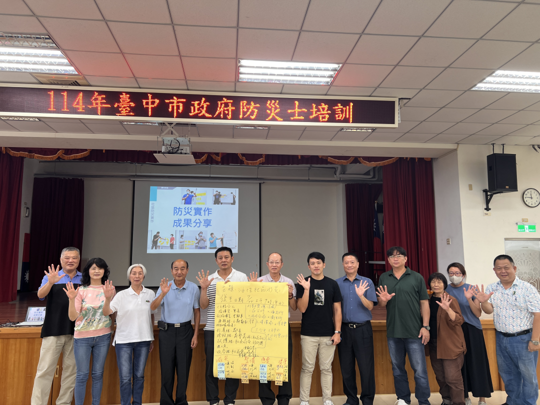 梧棲區防災士培訓迄今累計80人,圖為本所主任秘書與里長參與114年防災士培訓市府班第四梯次(大肚)照片。